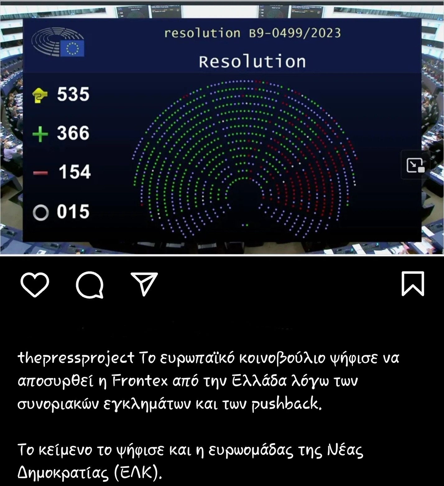 Το ότι το ευρωπαϊκό κοινοβουλιο τέθηκε συνολικά κατά πλειοψηφια κατά της frontex στην Ελλάδα αναγνωριζοντας επισημα πως γίνονται απαράδεκτα pushbacks είναι η μία είδηση γεγονός
