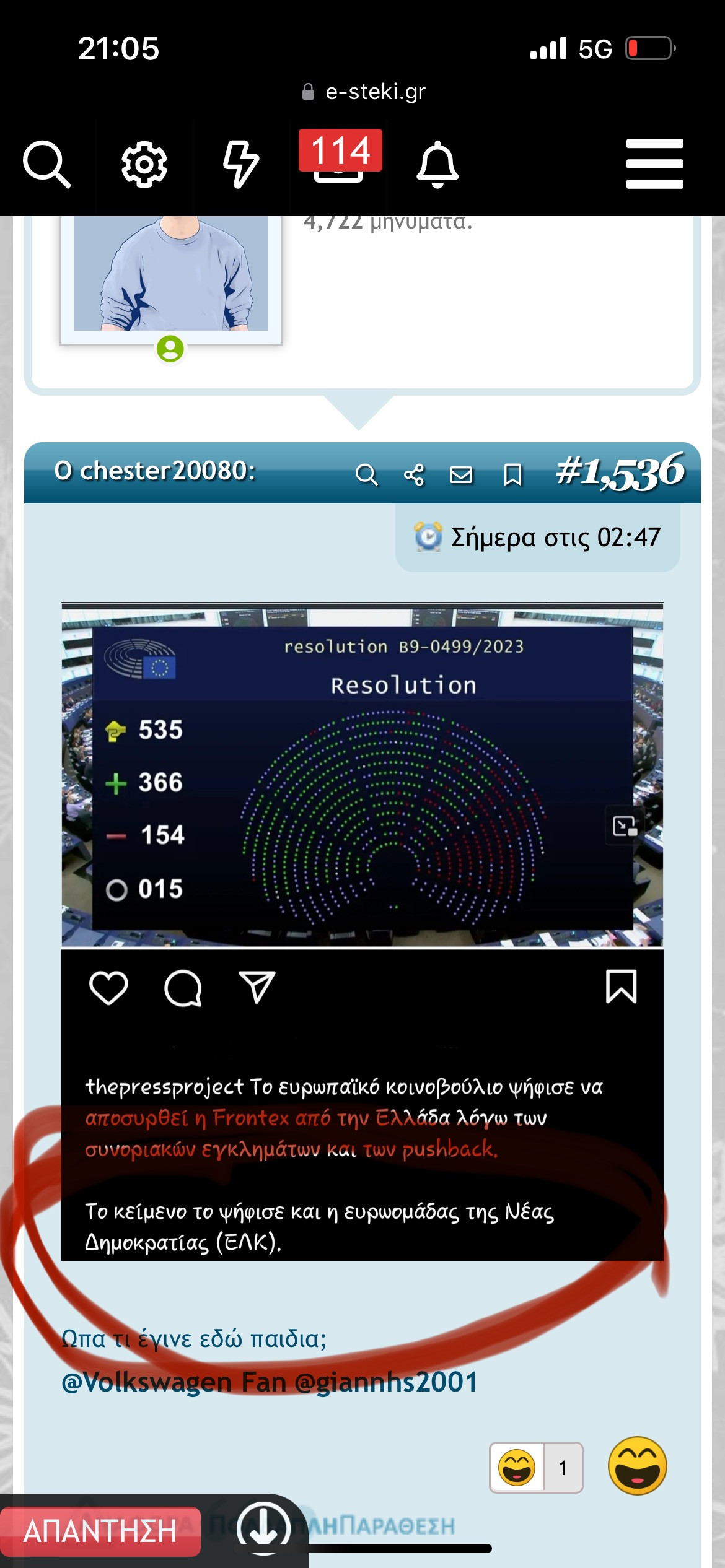 Το ότι το ευρωπαϊκό κοινοβουλιο τέθηκε συνολικά κατά πλειοψηφια κατά της frontex στην Ελλάδα αναγνωριζοντας επισημα πως γίνονται απαράδεκτα pushbacks είναι η μία είδηση γεγονός
