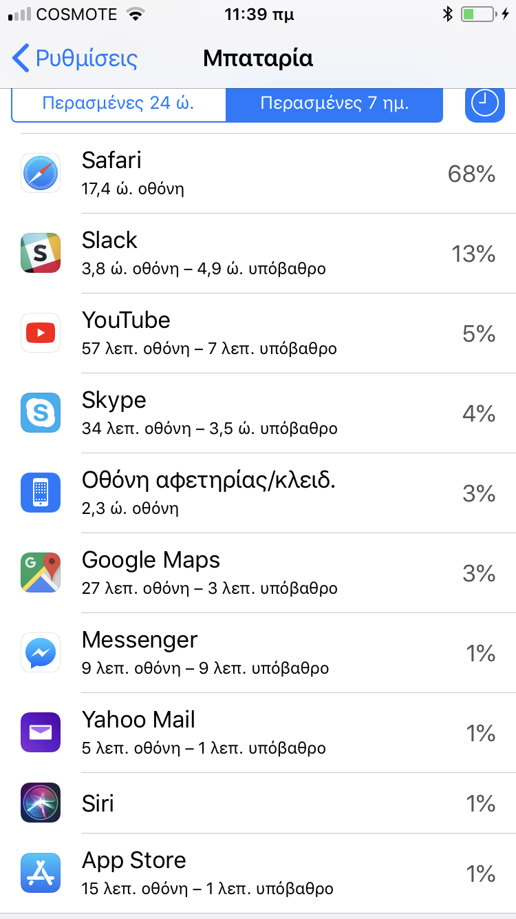 2) Από το λειτουργικό μπορείς ποιες εφαρμογές καταναλώνουν περισσότερο την μπαταρία σου. (Ρυθμίσεις -> μπαταρία και κάτω εμφανίζει στατιστικά).