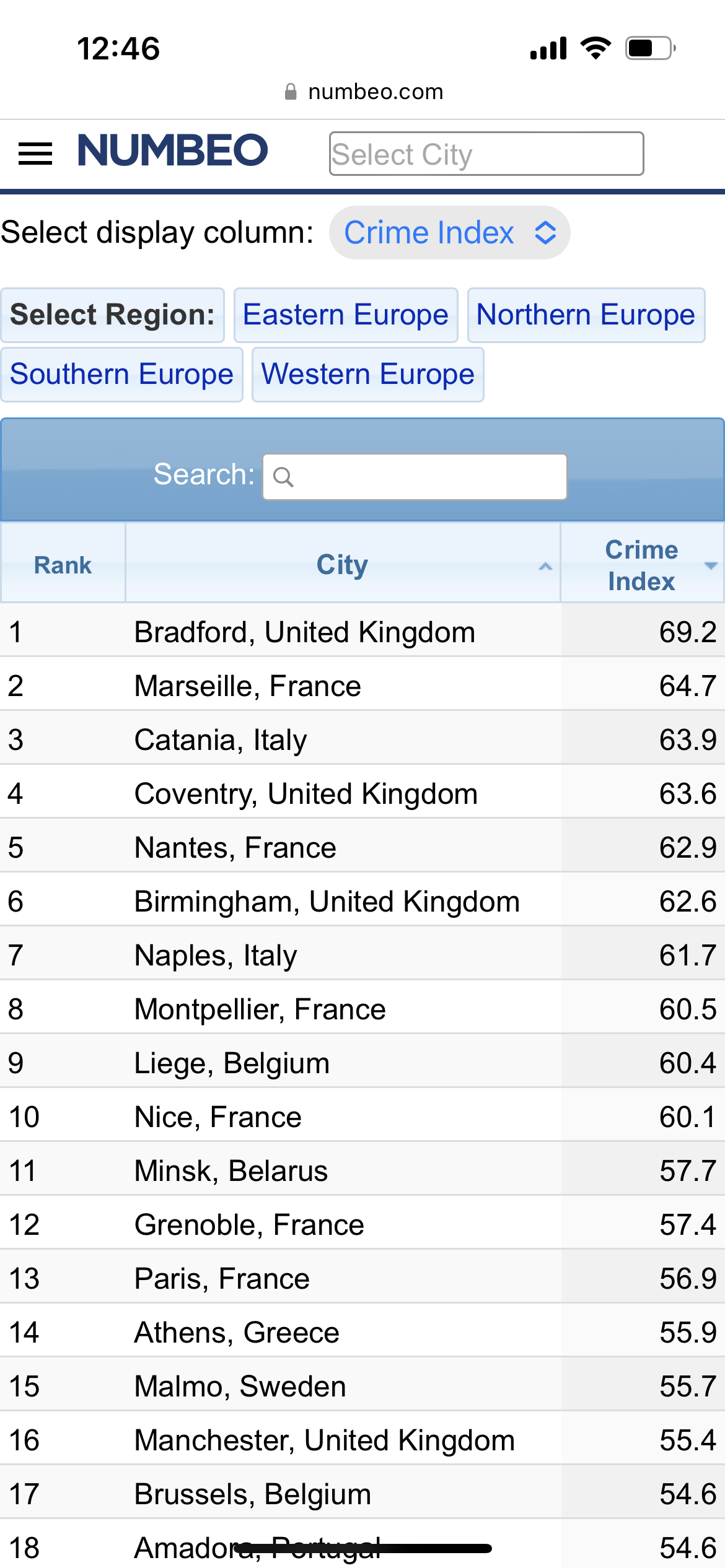 Στις τοπ 18 πόλεις έχουμε 4 Αγγλικές, 6 Γαλλικές συμπεριλαμβανομένου του Παρισιού, 1 Σουηδική και 2 Βελγικές με τις Βρυξέλλες να είναι μέσα σε αυτές. Εντυπωσιακό.