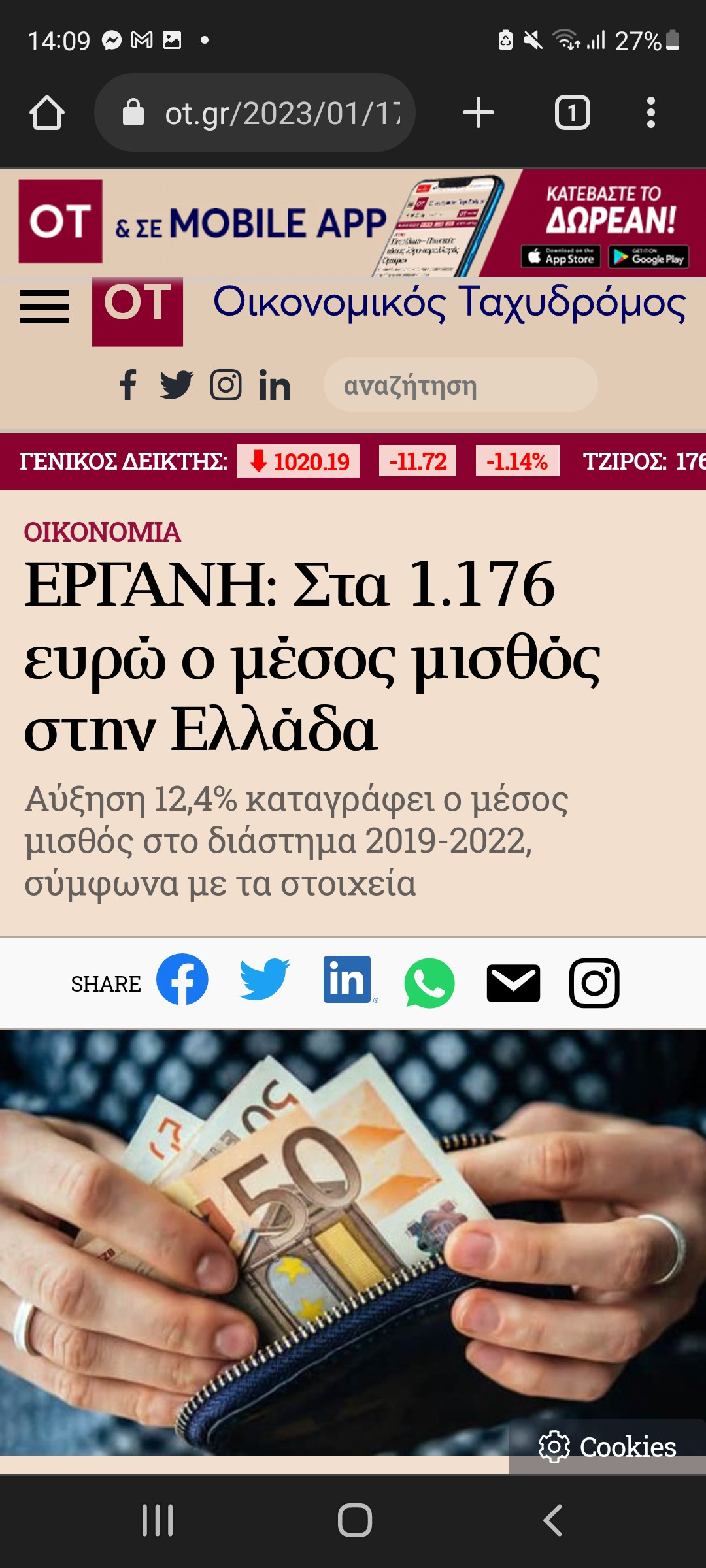 έκθεση ΕΡΓΑΝΗ 20221.176 είναι ο μέσος καθαρός μισθός στην Ελλάδα.