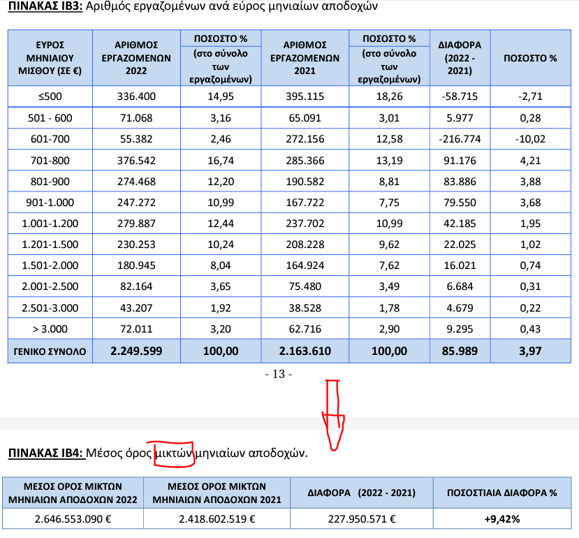 Τα στοιχεία του ΕΦΚΑ μίλαγαν για το πρώτο εξάμηνο του 2022, πρώτου δηλαδή τις αυξήσεις των μισθών.
