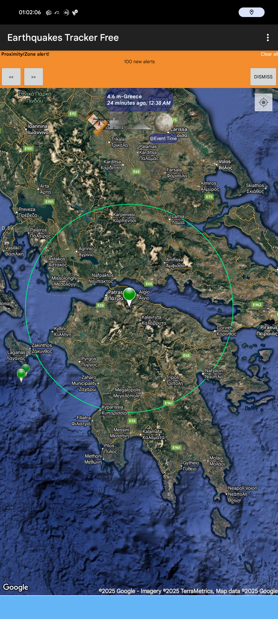 Distance26 km ESE of Pátra, Greece / pop: 168,000 / local time: 00:38:00.3 2025-02-11