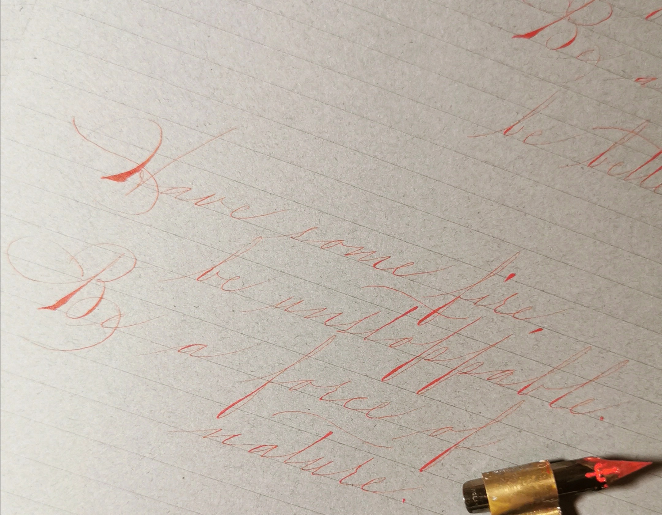 Καλημέρα! Έχω στα αγγλικά και μάλιστα διάφορα, για διαφορετικές γραμματοσειρές! Στα ελληνικά υπάρχουν λίγα, αλλά όχι κάτι που να με ικανοποιήσει δυστυχώς. Για αυτό, τη φορά που έγραψα σε ελληνικά spencerian, προσάρμοσα τα γράμματα με βάση την αγγλική και με βάση το αισθητικό αποτέλεσμα που ήθελα. Οπότε, αν μάθεις καλά στα αγγλικά, μετά είναι εύκολο να το προσαρμόσεις και στα ελληνικά, δεν χρειάζεσαι απαραίτητα κάτι ξεχωριστόΈχεις κάποιο guide για καλλιγραφία στα ελληνικά γράμματα, όσο και στα αγγλικά;