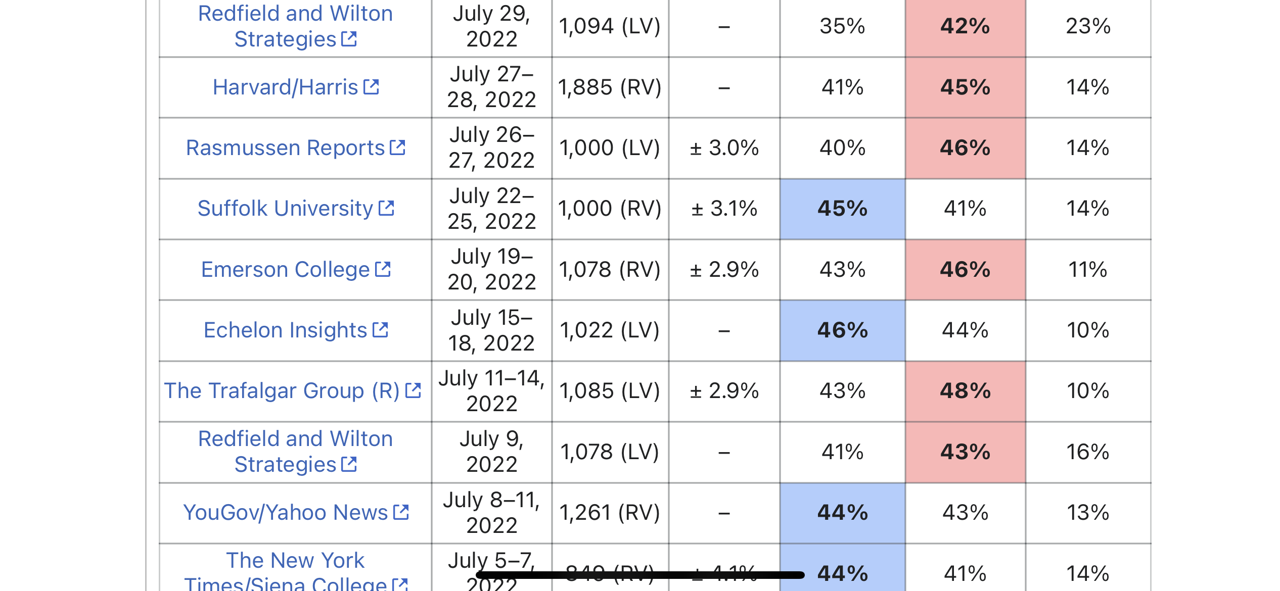 Αν ο Biden είναι καλύτερος τότε γιατί σε δημοσκοπήσεις ο Trump συγκεντρώνει το 44% των ψήφων ενώ ο Biden έχει πέσει στο 37% (το 2020 είχε πάρει 48%);; μήπως επειδή ο τύπος δεν μπορεί να κυβερνήσει;;