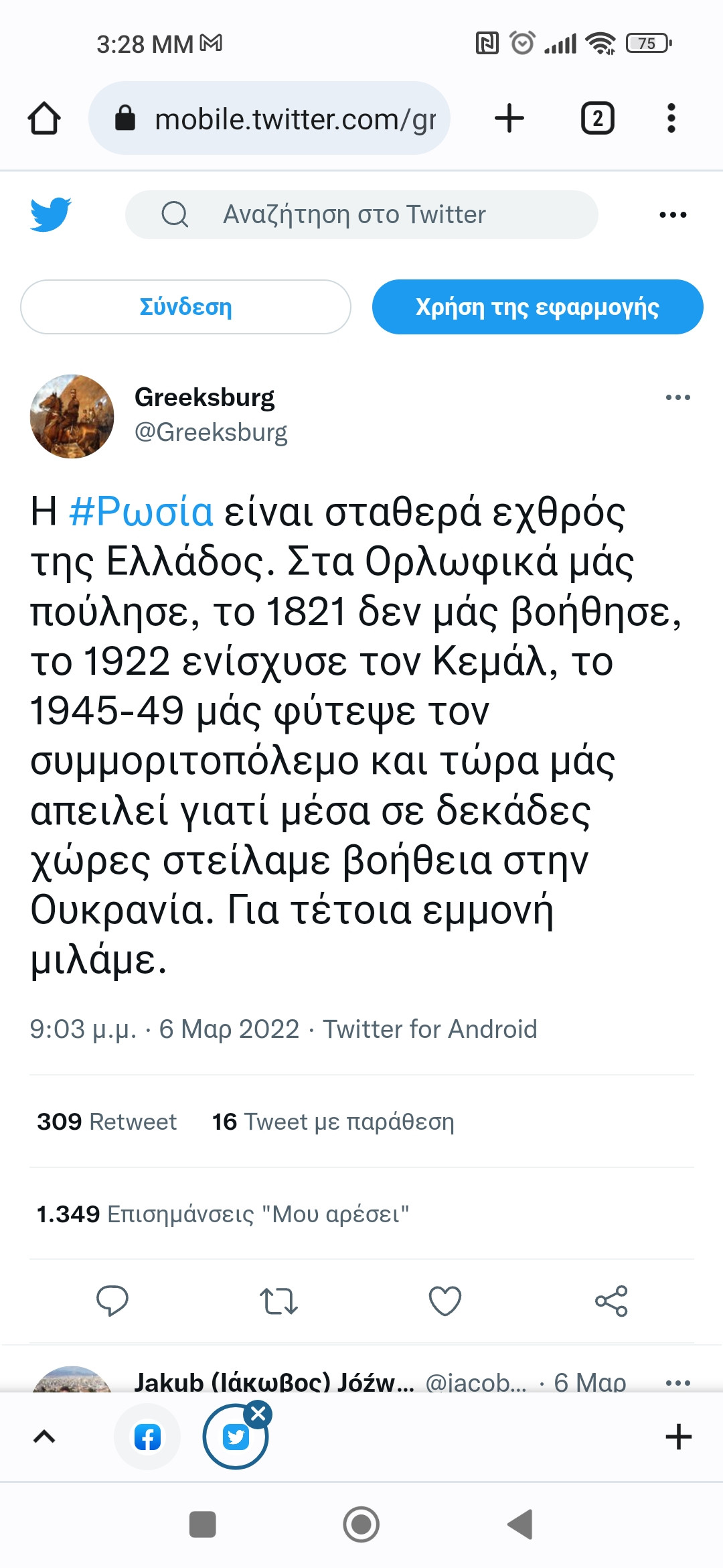 Βρε για δείτε τον Ζουστ που μας ποστάρει και τουιτ από ακροδεξιό εθνικιστικό ομοφοβικό ακκάουντ για να θάψει τη Ρωσία. Πως το έλεγες εκείνο για τα άκρα που τα βρίσκουν μεταξύ τους;View attachment 109629