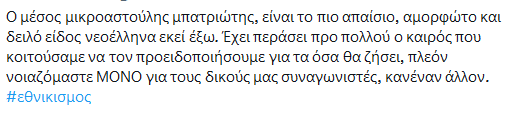 προσωπικά δεν έχω δει κανέναν πατριώτη να λέει τέτοια πράγματα…