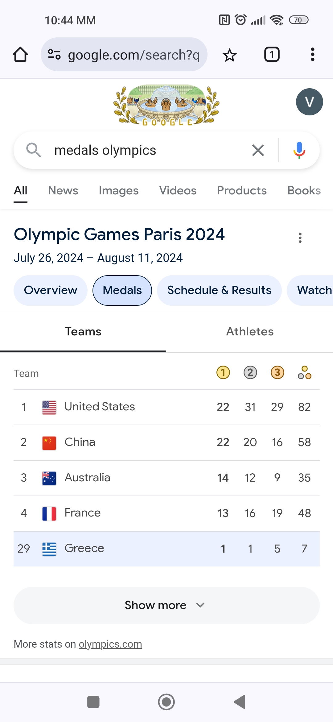 Περάσαμε από την 52 θέση στην 29η και έχουμε πλέον 7 μετάλλια. Pas mal !