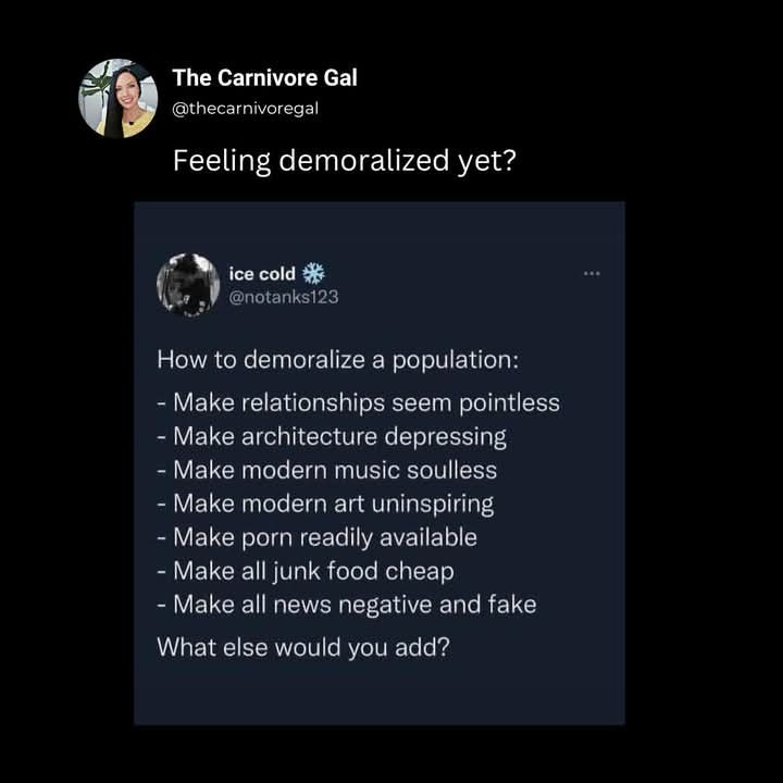 Ο άνθρωπος βελτιωνόταν συνεχώς μέχρι και πριν μερικά χρόνια. Όμως την τελευταία δεκαετία βλέπουμε μια παράνοια, η οποία ξεκινάει κυρίως από την αριστερή ιδεολογία, η οποία στοχοποιεί ανθρώπους ως ρατσιστές. Στοχοποιούνται άνθρωποι ως ρατσιστές επειδή λένε ότι τα φύλα είναι 2, επειδή λένε ότι δεν θέλουν ανοικτά σύνορα, επειδή λένε ότι δεν είναι φυσιολογικό να γυρνάνε όλα γύρω από την σεξουαλικότητα, ενώ παράλληλα εκφράζουν την κοινή λογική η οποία τείνει να χαθεί στις ημέρες μας. Δεδομένων αυτών δεν υπάρχουν ομάδες όπως το εννοείς. Από την μια έχουμε μια μικρή ομάδα που θέλει να περάσει κάθε είδους παράνοια στο όνομα της προοδευτικότητας. Από την άλλην έχουμε την πλειοψηφία των ανθρώπων όπου δεν ανέχονται πλέον αυτές τις ανοησίες/παράνοιες με αποτέλεσμα να αντιδρούν σθεναρά. Ο λόγος που λέμε αυτά που λέμε και ο λόγος που βάζουμε αυτά τα gif είναι επειδή αντιπροσωπεύουν την σκληρή αλήθεια του σήμερα. Μια πραγματικότητα η οποία τείνει στην παράνοια απορρίπτοντας κάθε είδους λογική. Μια πραγματικότητα όπου στα σχολεία των ΗΠΑ γίνεται προπαγάνδα σε ανήλικα παιδιά όσο αφορά το φύλο τους και τον ρατσισμό. Μια πραγματικότητα όπου αν πεις την άποψη σου αμέσως στοχοποίησε ως ρατσιστής από μια ομάδα npc που ακολουθούν πιστά ότι τους λένε τα ΜΜΕ που προωθούν agenda.