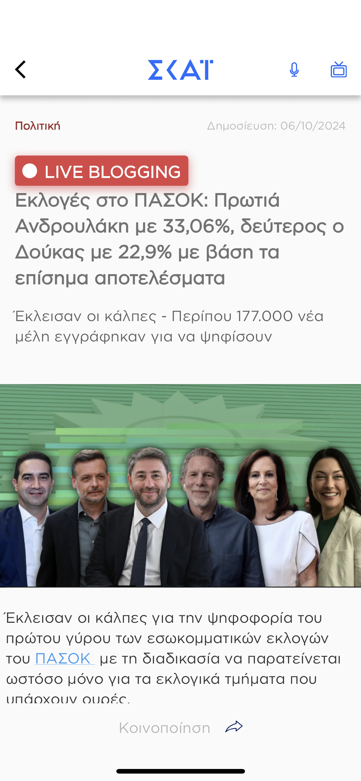 Σε αυτό θα συμφωνήσω. Επίσης επιβαρυντικό για τον Ανδρουλάκη ότι η μεγαλύτερη αύξηση στη συμμετοχή καταγράφεται στην Αττική.Έχω την εντύπωση πως όσο μεγαλύτερη η συμμετοχή τόσο το χειρότερο για τον Ανδρουλάκη.
