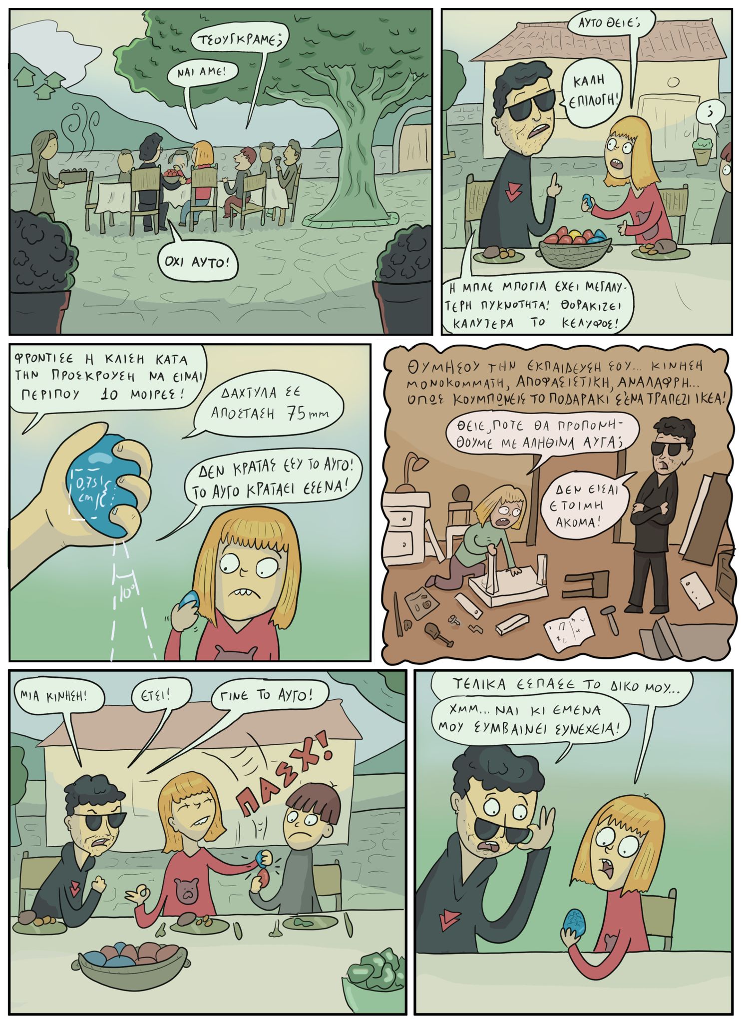 Βαλε και την ασπρη φανελα που λεει και ο βασιλοφρονας στη διαφημιση των τζμπο...μια γεύση από τζατζίκι, αρνίλα και σφιχτό βραστό κόκκινο αυγό στο στόμα (και μπογιά στα χέρια), σε τραπεζώματα.