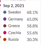 Παίζει ρόλο και ο πληθυσμός κάθε χώρας πάντως.Η τουριστική Ελλάδα χθες συγκρινόμενη με την μικρή ανεμβολίαστη Γεωργία