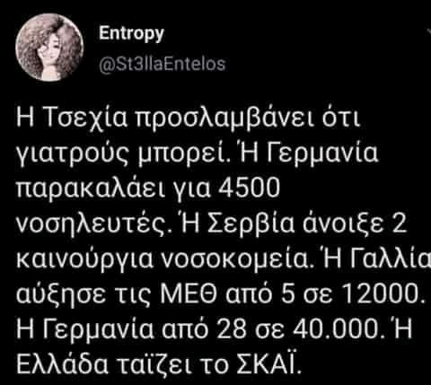 α)Εγώ σου μίλησα για τον τρόπο με τον οποίο τα κράτη αυτά προσέγγισαν τον πολίτη και προσπάθησαν να τον πείσουν (κι όχι να τον τρομοκρατήσουν, τραμπουκίσουν κι εν τέλει υποχρεώσουν άμεσα ή έμμεσα όπως είπα και πριν), από εκεί και πέρα σαφώς κι έκαναν ό,τι έκριναν σκόπιμο για να μη φτάσουν να ψοφολογάει κόσμος στους διαδρόμους των νοσοκομείων τους...άλλο το ένα, άλλο το άλλο!α) Στις περισσότερες χώρες υπάρχει διάκριση μεταξύ εμβολιασμένων και ανεμβολίαστων πάντως. Μικρότερη ή μεγαλύτερη στις περισσότερες υπάρχει, στις περισσότερες οι ανεμβολίαστοι χρειάζεται για κάποια πράγματα να κάνουν τεστ ενώ οι εμβολιασμένοι όχι ή δεν μπορούν να τα κάνουν καθόλου. Στις μόνες που δεν υπάρχει είναι αυτές που το ποσοστό εμβολιασμένων είναι τόσο υψηλό που οι ανεμβολίαστοι δεν μπορούν να προκαλέσουν πρόβλημα. Ακόμα και στην Δανία πχ, μέχρι να ανέβει το ποσοστό εμβολιασμού μόνο εμβολιασμένοι έμπαιναν σε εσωτερικούς χώρους. Οι δικοί μας αντιγράφουν τους έξω και στα καλά και στα κακά, θέλουν να έχουν το μαξιλαράκι αν όλα πάνε χάλια ότι δεν έκαναν κάτι διαφορετικό από αυτό που έκαναν όλοι αρα δεν φταίνε αυτοί.
