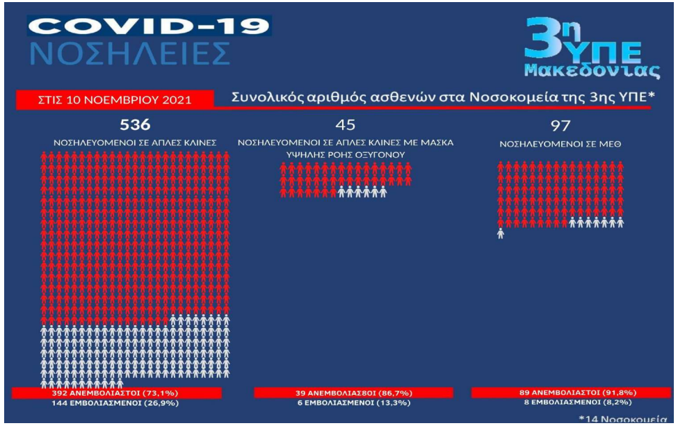 Σημερινά δεδομένα από τα νοσοκομεία της Μακεδονίας. 92% των ασθενών στις ΜΕΘ είναι ανεμβολίαστοι.