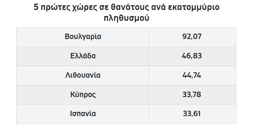 Στο site την Ομοσπονδίας Ενώσεων Νοσοκομειακών Γιατρών, αναφέρουν πως στις 10 Νοεμβρίου 2021, ο μέσος όρος θανάτων ανά εκατομμύριο στην Ε.Ε είναι 3,24 ενώ στην Ελλάδα ήταν 5,29.