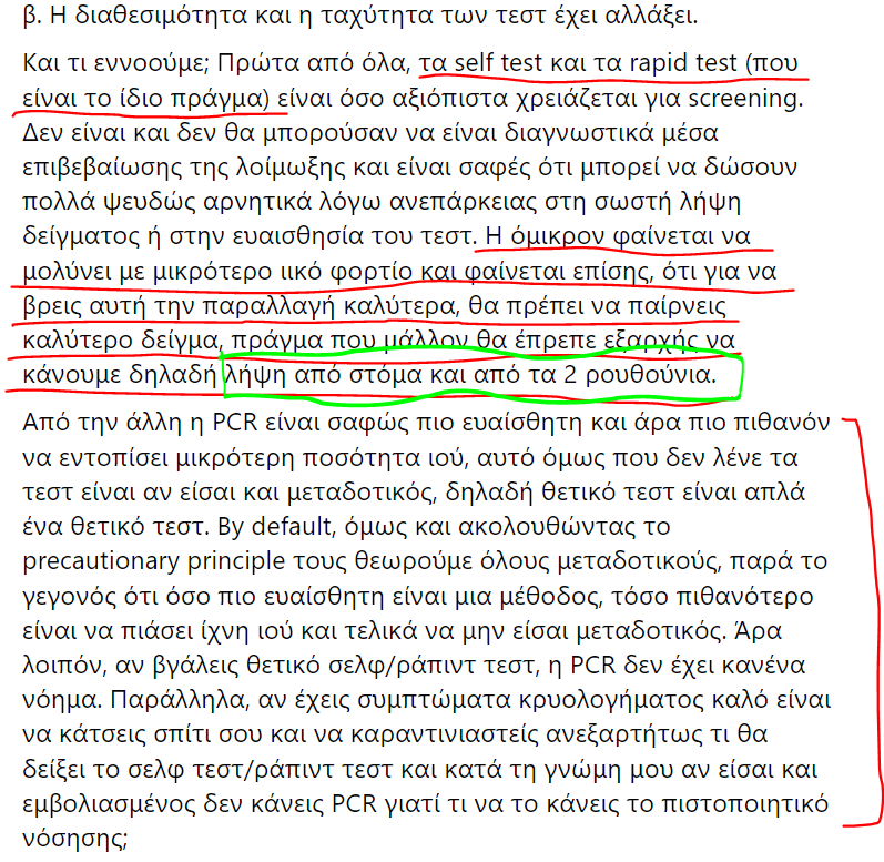 να συμπληρώσω μια ακόμη περίπτωση, αυτό που δεν ξερω τι παιζει, ειναι αν τα rapid βγαίνουν θετικά, αλλά μετά το μοριακό βγεί αρνητικό την ίδια μέρα ή την επόμενη μέρα. Εκεί ίσως να οφείλεται στο δείγμα και να θέλει επανάληψη το μοριακό. Είναι ιδιάζουσα περίπτωση