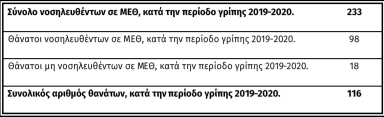 Για την ελλαδα η χειροτερη χρονια ειχε καπου στις 180-200 εισαγωγες (την χρονια!!!! , οχι την ημερα που ειναι 300 με τον κοβιντ)!!!!!This “new normal” will occur when total respiratory viral infections, hospitalizations, and deaths inclusive of those from COVID-19 are no higher than what typically occurred in the most severe influenza years before the current pandemic