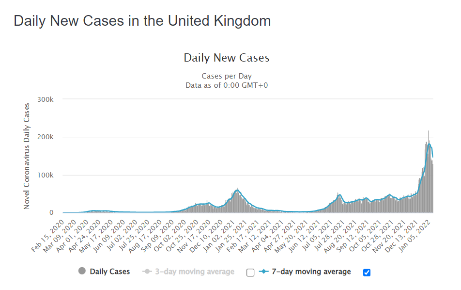 Η Αγγλία μετά το ταβάνι με πάνω από 200κ ημερήσια κρούσματα ξεκίνησε να πέφτει.