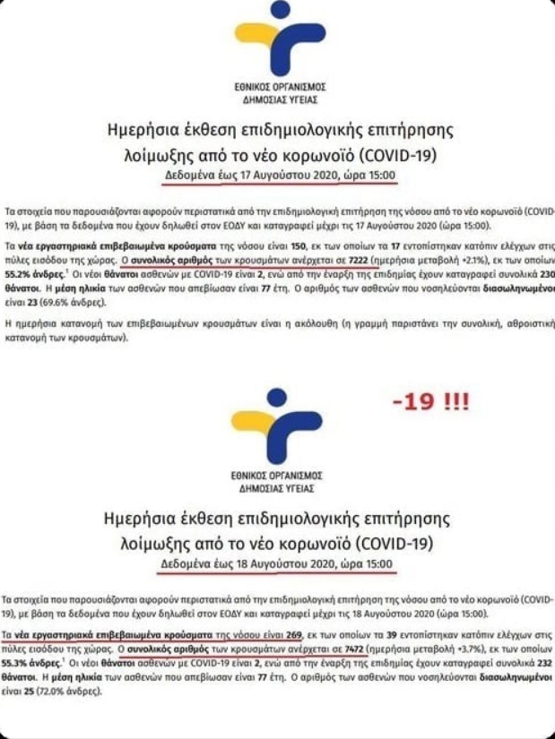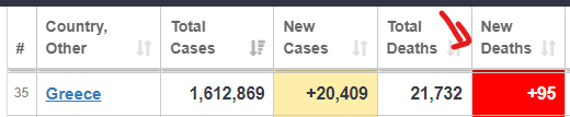 Εγω απλα ενημερωνω οτι εδω και 3-4 μηνες ριχνουμε ταφοπλακα σε 70-80 ατομα την μερα !Γενικα ο καπραβελος,ο σαρι ,οι φλατοντ εχουν πεσει εξω στις εκτιμησεις τους κατα πολυ ! ...ειναι παραπανω θανατοι απ οσοι υπολογισαν
