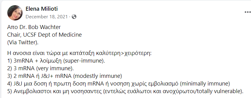 λίγο καιρό πριν λέγανε ο,τι η ανοσία του εμβολίου είναι καλύτερη από τη φυσική νόσηση τώρα βγάζουν αυτό με τον συνδυασμό εμβολίου και νόσησης