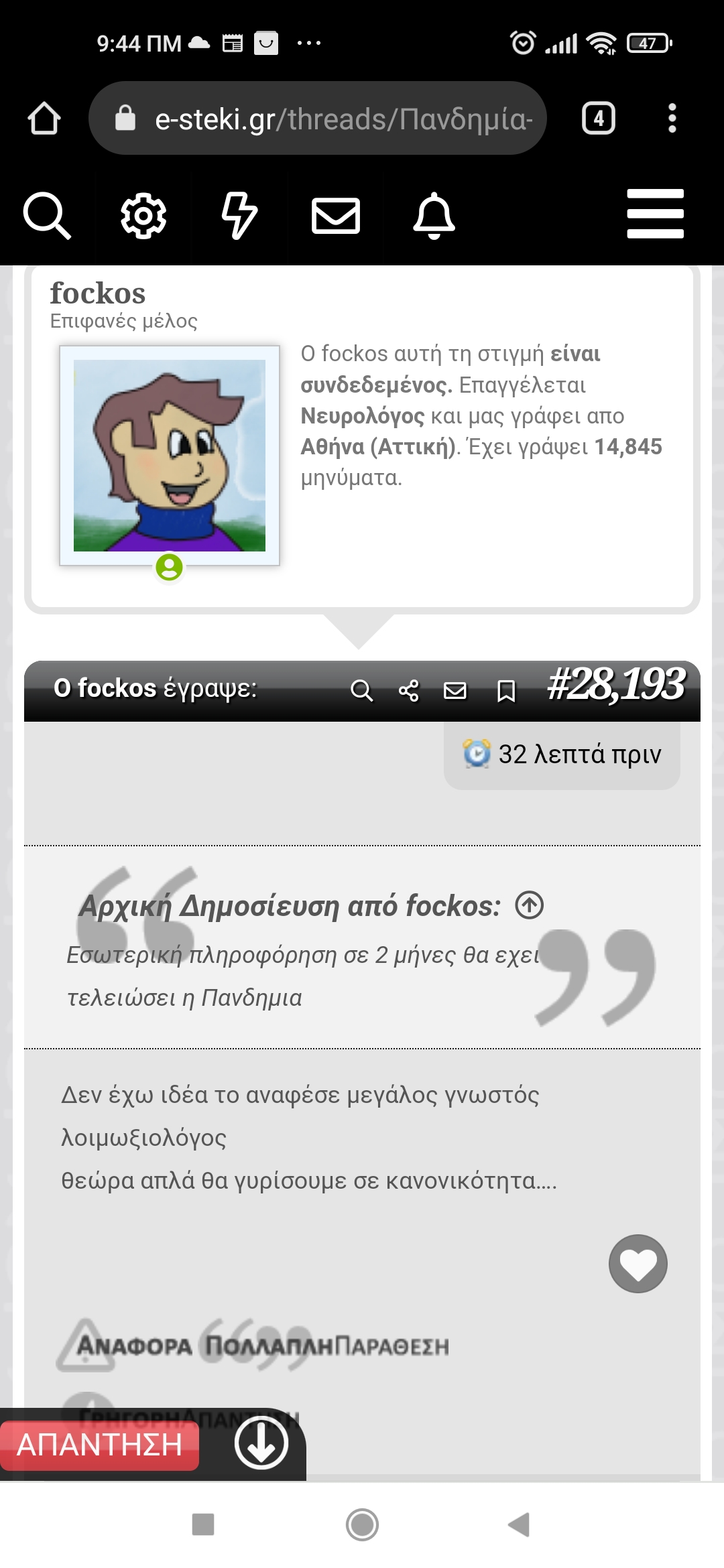 Ο fockos αυτή τη στιγμή δεν είναι συνδεδεμένος. Μας γράφει από Αθήνα (Αττική). Έχει γράψει 15.347 μηνύματα.