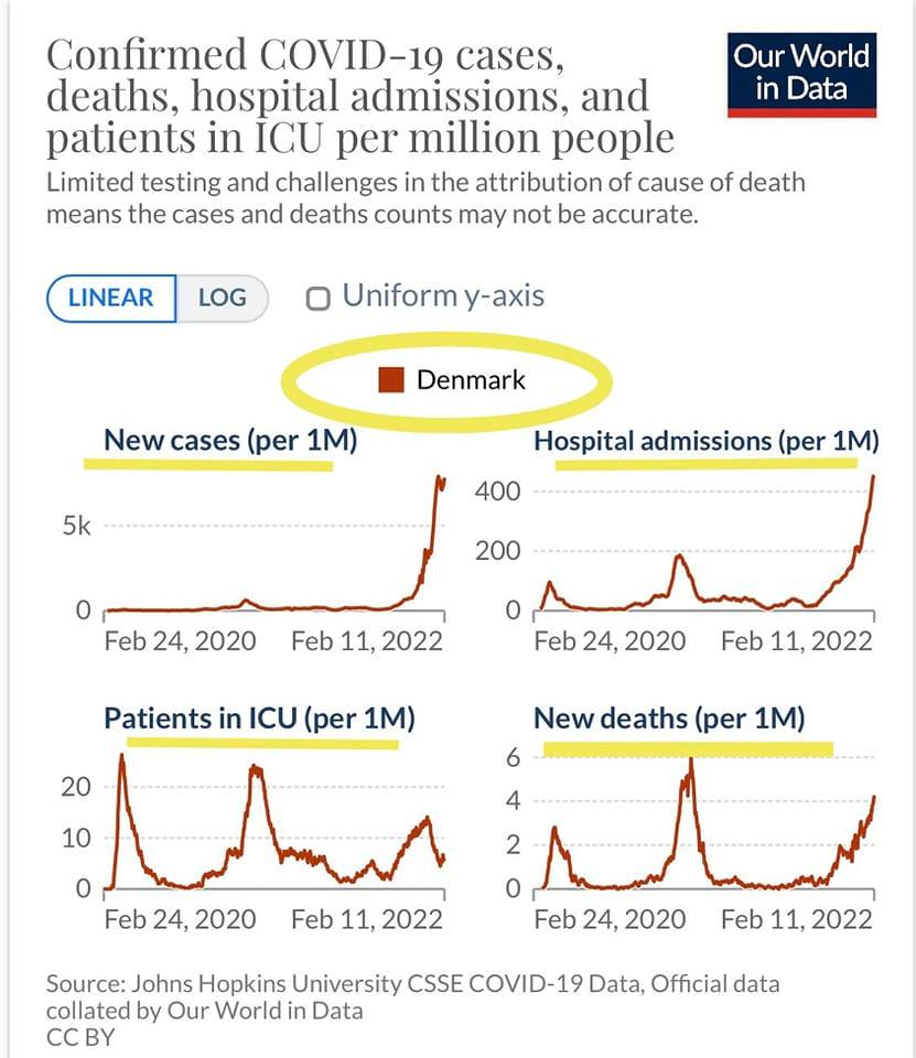 Αντιλαμβάνεστε ότι οι θάνατοι της ηπιας Omicron σε 6 εβδομάδες είναι ήδη διπλάσιοι (801 έναντι 375) από το σύνολο των 5 μηνών Delta και μπορεί να φτάσουν σε υψηλοτερο σημειο απ την αρχη της πανδημιας στην Δανια?