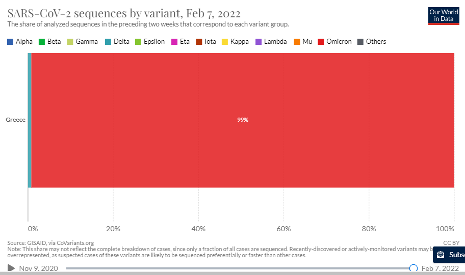 Δυστυχώς τα δεδομένα για τις μεταλλάξεις έχουν σταματήσει για την Ελλάδα στις 7 Φεβρουαρίου...πάντως πλέον πιστεύω πως εκτός από την κυρίαρχη Όμικρον, έχουμε και ένα ποσοστό Β2 μετάλλαξης