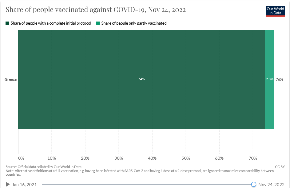 Περίπου ένα 24% του πληθυσμού δεν έχει λάβει καμία δόση εμβολίου και από ότι φαίνεται από εδώ και πέρα από αυτούς μετρημένοι στα δάχτυλα θα εμβολιαστούν, αφού δε το έχουν πράξει ως τώρα