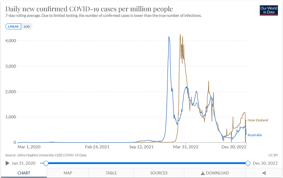 Ουσιαστικά, τόσο η Αυστραλία, όσο και η Νέα Ζηλανδία, που ακολουθούσαν μέχρι πέρυσι το φθινόπωρο πύρινη zero covid στρατηγική, την εγκατέλειψαν, με την αύξηση των εμβολιασμών στο εσωτερικό τους. Βίωσαν πάρα πολλές μολύνσεις, λόγω Δ ακόμη, όμως άντεξαν, λόγω ικανοποιητικού εμβολιαστικού ποσοστού.