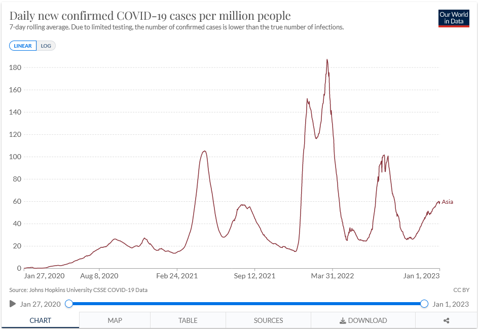 Πάντως στην Ασία, μέχρι σήμερα έχουν κρατηθεί σχετικά χαμηλά σε συνολικό αριθμό μολύνσεων, αναλογικά με τον πληθυσμό τους και τις υπόλοιπες ηπείρους. Μάλλον, επέμειναν περισσότερο στη χρήση NPIs, ιδίως σε χώρες όπως Ιαπωνία/Ν.Κορέα που η χρήση μάσκας σε περιόδους επιδημιών, είναι στην κουλτούρα τους.