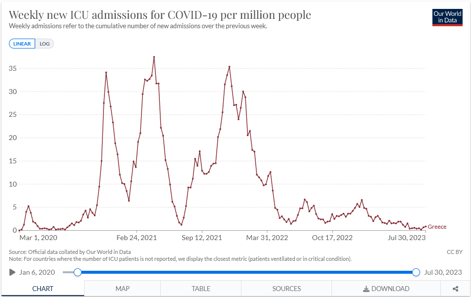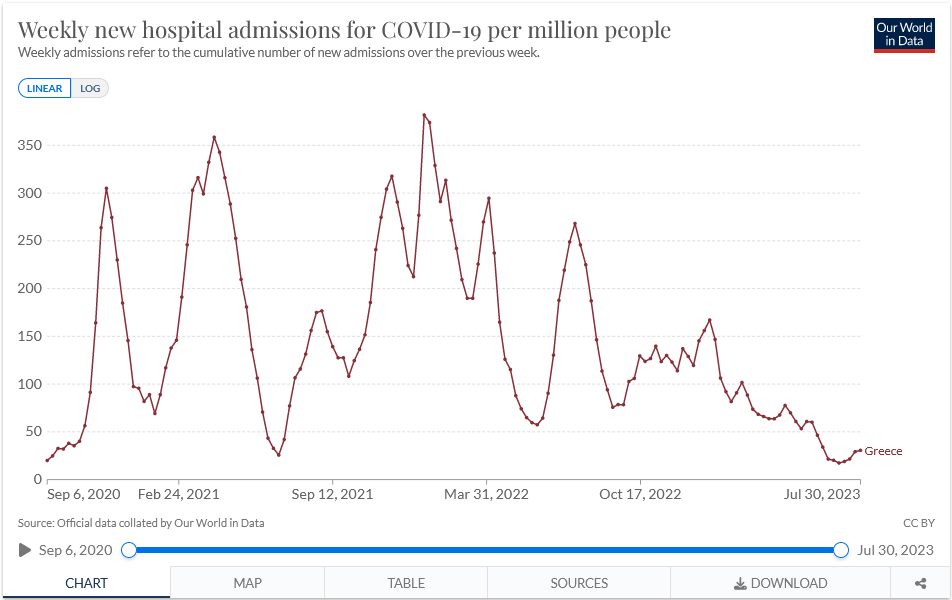 πράγματι, πολύ μεγάλη διαφορά! Αν και πάλι δεν έχουμε φτάσει σε επίπεδα εποχικής γρίπης. Αν καταφέρουμε να φτάσουμε δηλαδή κάποτε. Παραμένει υψηλός ο αριθμός των θανάτων, σε εβδομαδιαία βάση, για τέτοιου είδους ιό.Έχω την αίσθηση πως κάθε χρόνο τέτοιον καιρό έχουμε ένα “summer surge”. Δεν αποτελεί έκπληξη τώρα πια.