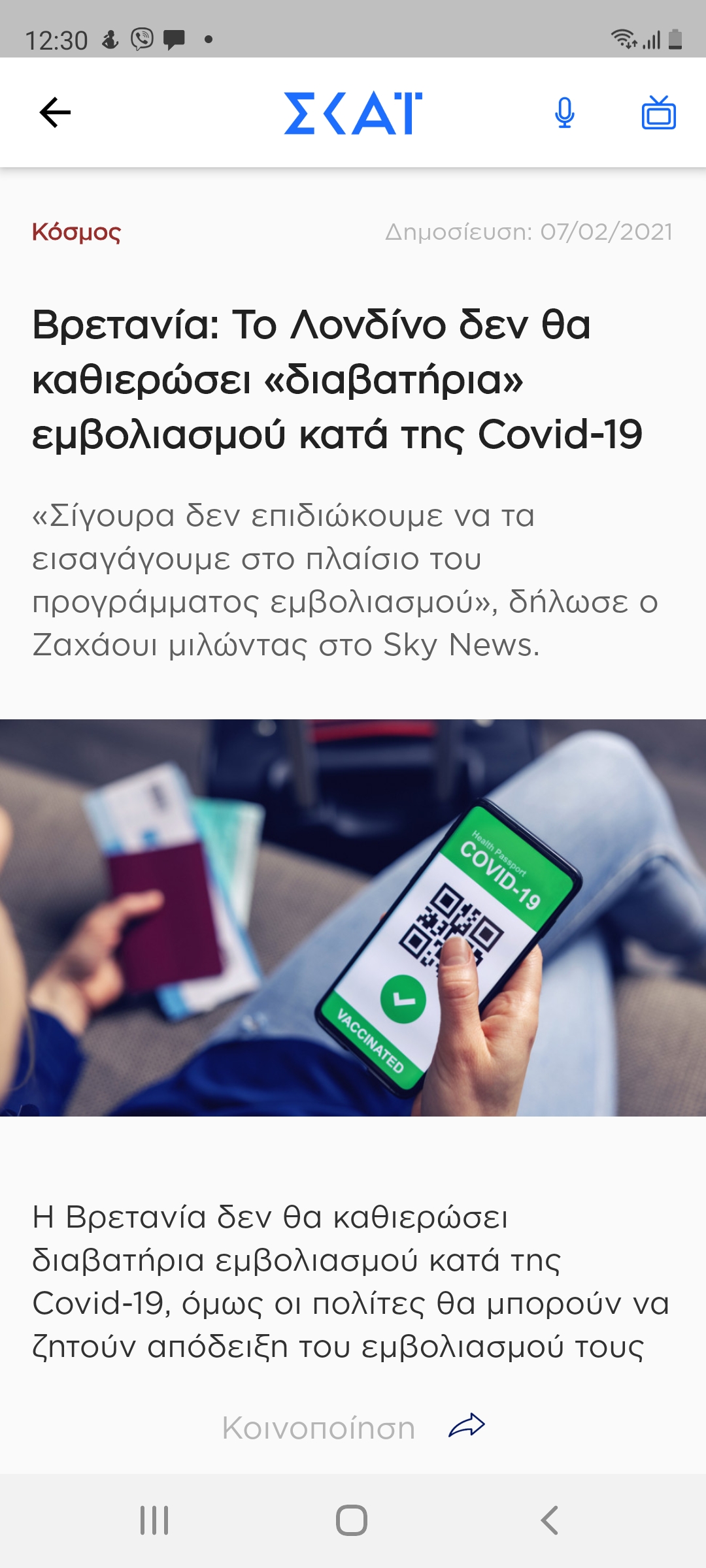 Στο Ισραήλ πάντως έχουν εμβολιαστει οι άνω των 60ετων κατά 90%. (πρώτη δόση) Πηγίτσα