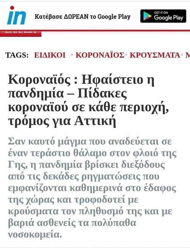 Και το θέμα μας είναι ο ιός και όχι η καλντέρα της Σαντορίνης και αν αυτή γίνει 10πλάσια σε μέγεθος.