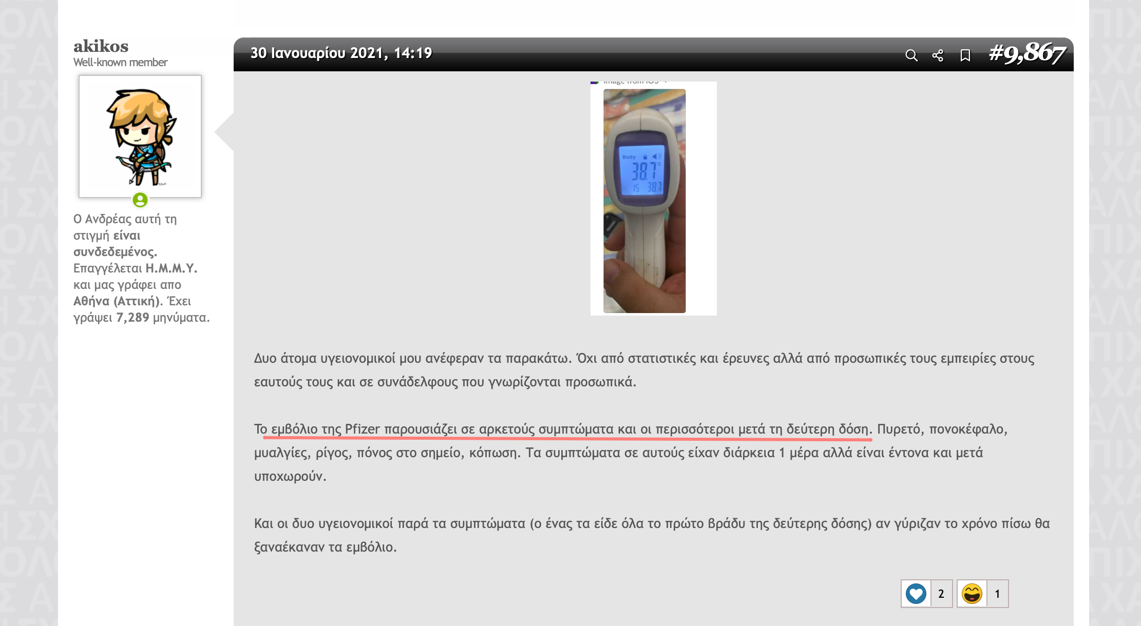 ευχαριστώ, ακικο, το θερμόμετρο παιδιά αυτό είναι από μένα.... στην δεύτερη δόση τα είδα όλα.... και ανέβασα μετά από πολλά χρόνια πυρετό.Παγώνη: Το εμβόλιο έχει παρενέργειες, ειδικά η δεύτερη δόση (video)