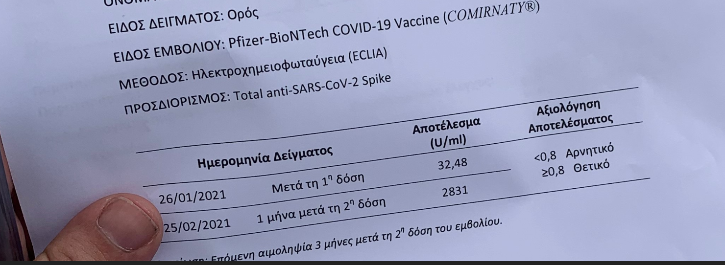 και σύμφωνα με την προδημοσίευση είχα πολύ υψηλό τίτλων αντισωμάτων.