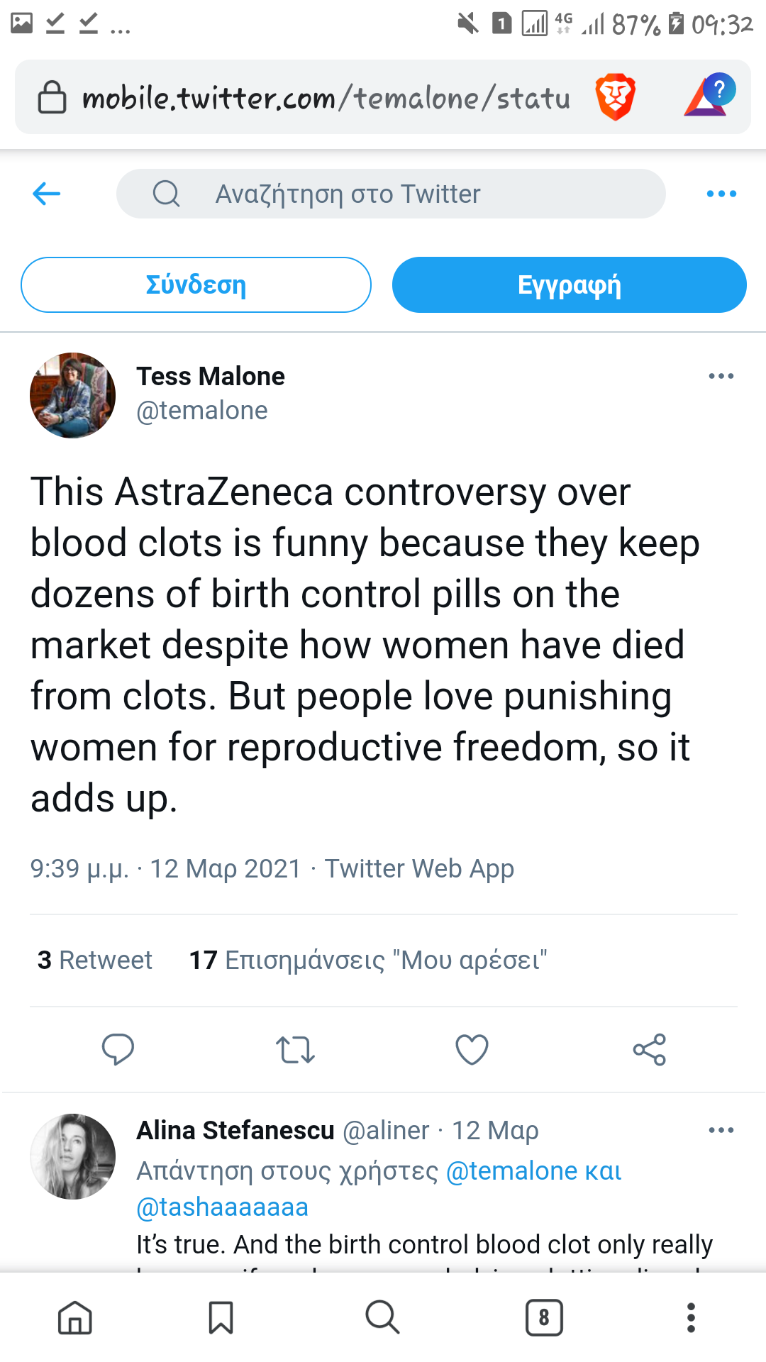 Το ξερω. Μου φτιαξες τη μεραΚανονικα δεν θα έπρεπε να παιρνεις καν χαπια αντισυλληψης. Ξαναδιαβασε το ποστ σου. Οι πιθανότητες για θρομβωση ειναι υπερπολλαπλασιες απο τον εμβολιασμο με αστραζενεκα. Σταματησε τα αμεσως![]()