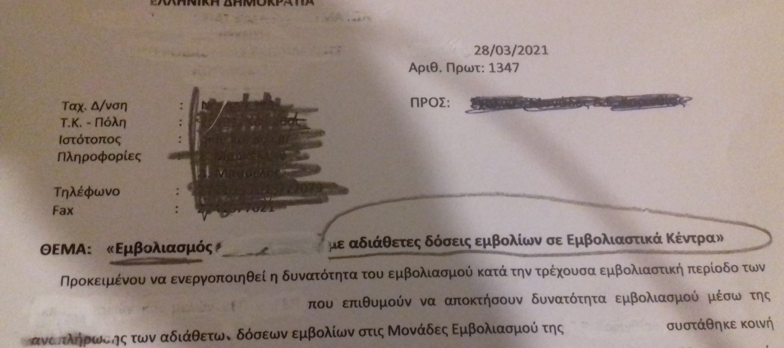 Στο μεταξυ στο μεηλ που μου σταλθηκε,εκανα την αιτηση κανονικα,οτι δεχομαι να εμβολιαστω απο τα αδιαθετα εμβολια,εβαλα τα στοιχεια μου κλπ,αλλα με την υποσημειωση οτι δεχομαι ολα τα εμβολια ΕΚΤΟΣ ΑΥΤΟΥ ΤΗΣ ΑΣΤΡΑΖΕΝΕΚΑ!!! ΘΕΑ;