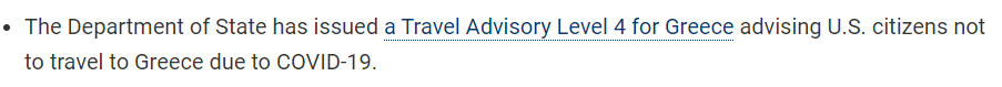 Ναι, οι Η.Π.Α. μας έβαλαν στο κόκκινο (Do Not Travel). Δείτε όμως τον πανευρωπαϊκό χάρτη: