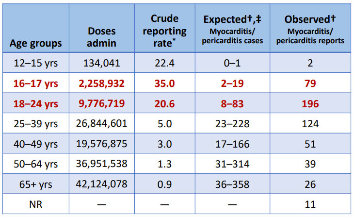 Τα κανονικά περιστατικά στον τυπικό πληθυσμο/ανεμβολίαστοι είναι η στήλη expectedΑυτοι οι αριθμοι δεν λενε τιποτα απο μονοι τους. Ποια ειναι τα περιστατικα μυοκαρδιτιδας στους μη εμβολιασμενους; Επισης τα ποσοστα ειναι τοσο μικρα και επισης δεν υπαρχει αμεση συσχετιση ακομα, οποτε στην παρουσα φαση δεν θα ανησυχουσα.