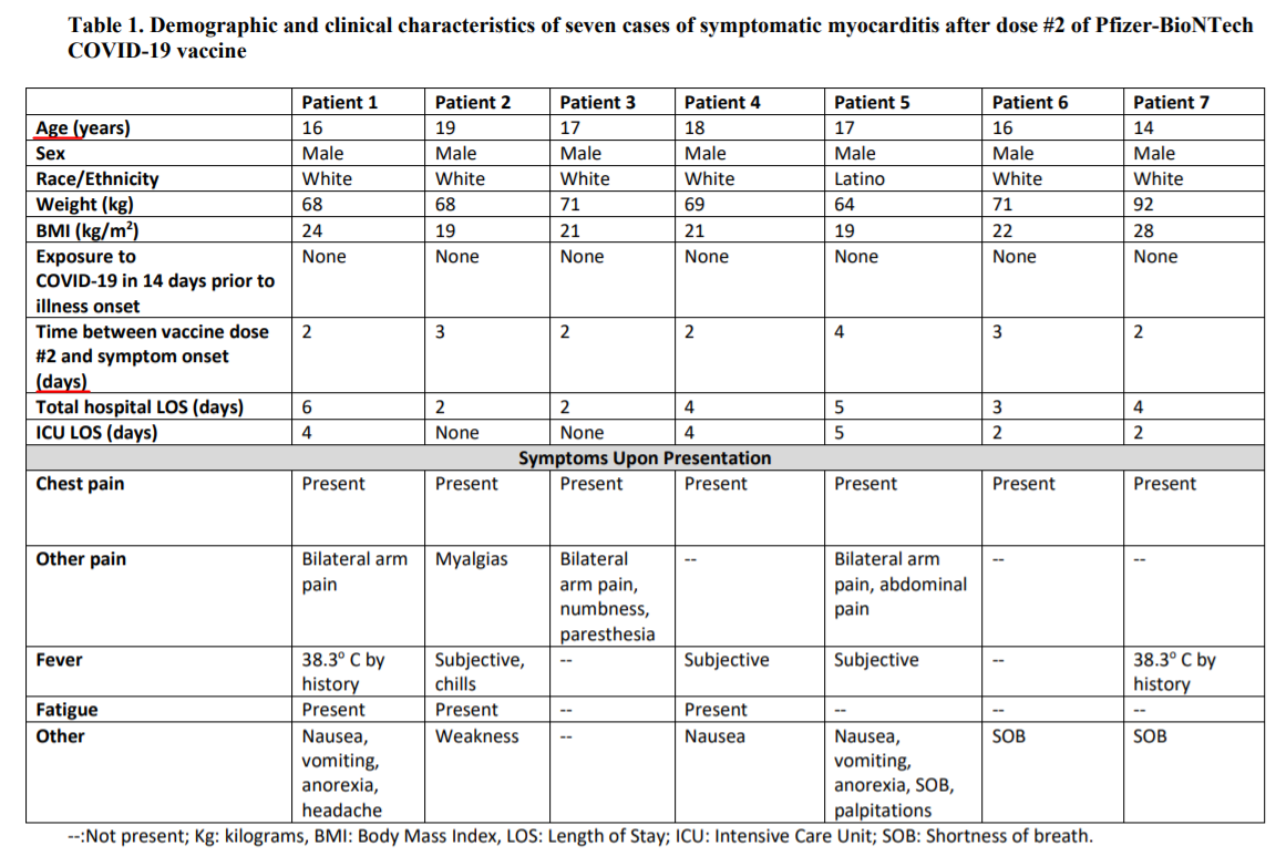 Symptomatic Acute Myocarditis in 7 Adolescents After Pfizer-BioNTech COVID-19 Vaccination
