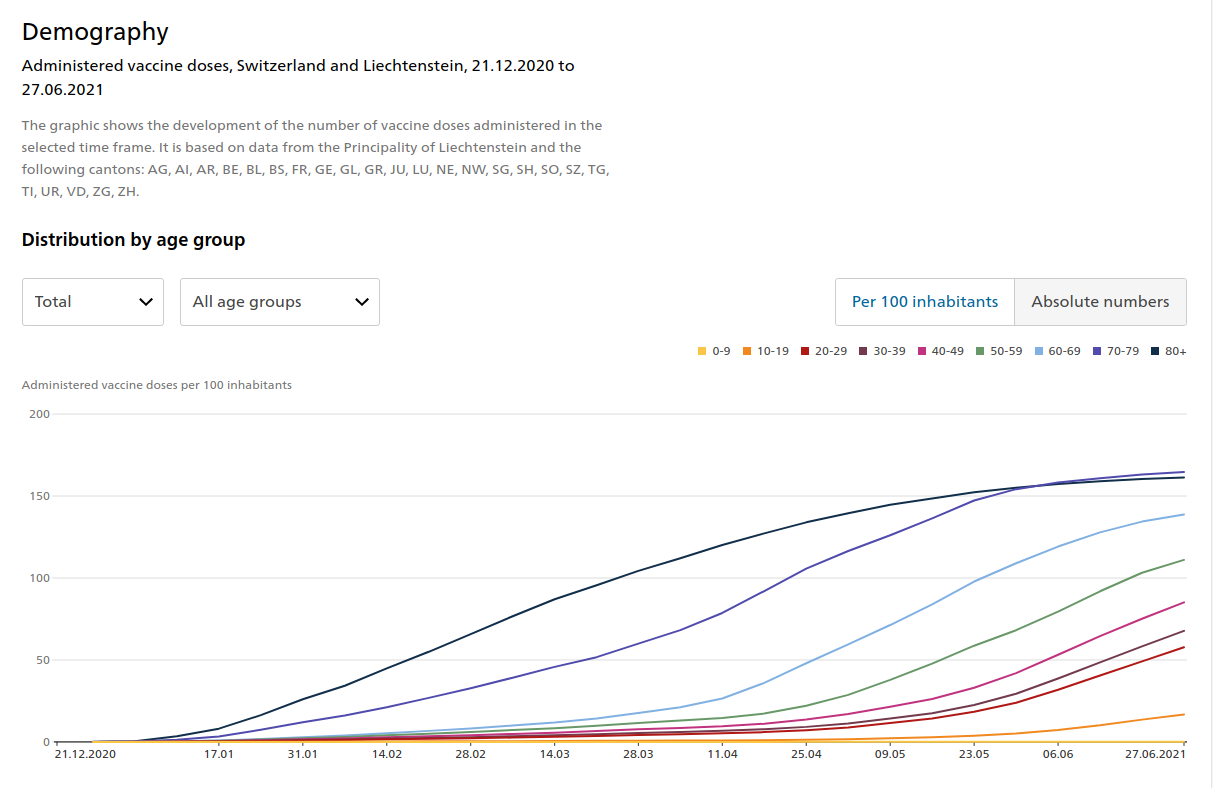 Στην Ελβετία αυτή τη στιγμή έχουν γίνει administered 57 δόσεις ανά 100 νέους ηλικιών 20-29. Αυτό το νούμερο μεγαλώνει μέρα με τη μέρα καθώς η καμπύλη αυξάνεται (πριν ένα μήνα αυτό το νούμερο ήταν μόλις 23).