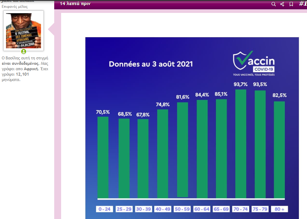 Αν εχεις εμβολιασει το 80% μια ηλκιακης ομαδας ...πιστευεις οτι μπορεις να εχεις πανω απο 20% αντιμεβολιαστων ?Να ναι καλά ο Μακρόν που έφερε τα πάνω κάτω.