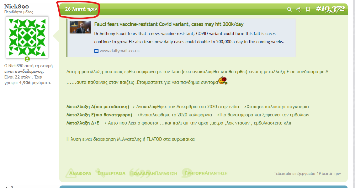Οτι λεει το FLATOD εχουν βγει αληθινες 16 μηνες τωρα .....απο Δεκεμβριο-Γεναρη ξεραμε τι θα γινει τωρα το καλοκαιριΘα δουμε στο μέλλον αν ισχύσει αυτό. Εχουν γίνει τοσες προβλέψεις από την αρχη της πανδημιες ελάχιστες απο τις οποιες βγήκαν αληθινές. Δεν μπορείς μα ξέρεις πραγματικα