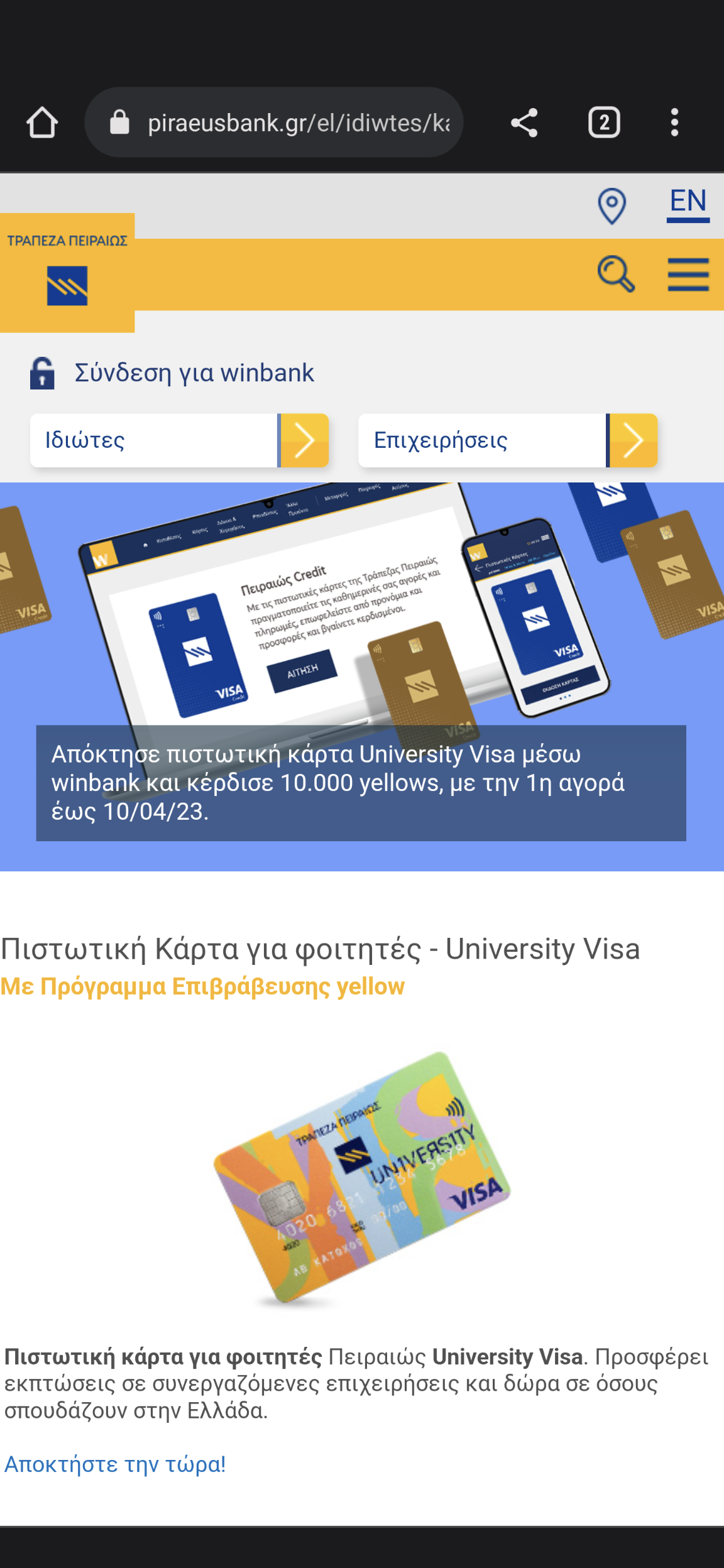 Αν βγάλεις πιστωτική από την εθνική δες αν μπορείς να βγάλεις την μαύρη κάρτα που έχει πιο πολλά (πχ ασφάλιση online αγορών). Κοστίζει €120 τον χρόνο και δεν πληρώνεις τον 1ο χρόνο. Την βγάζεις και μετά από 1 χρόνο πας στην τράπεζα και αλλάζεις σε gold ή silver![]()