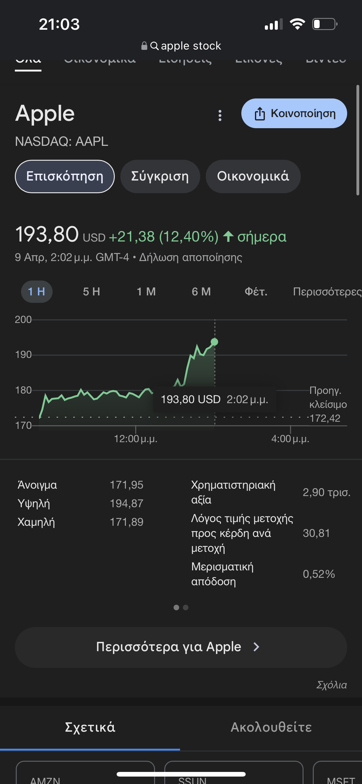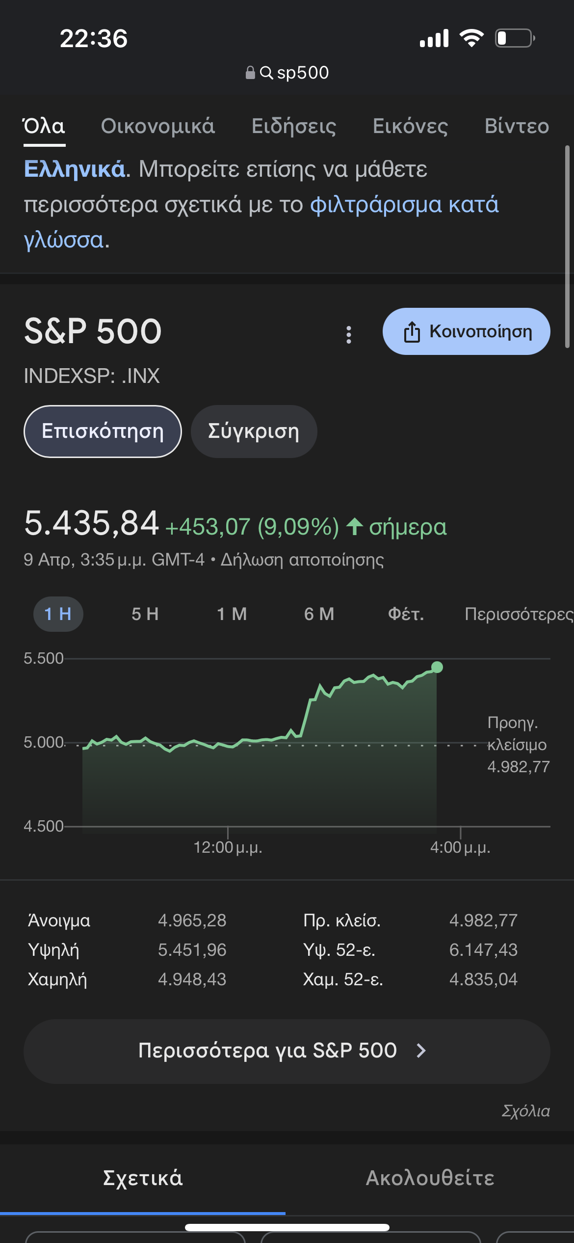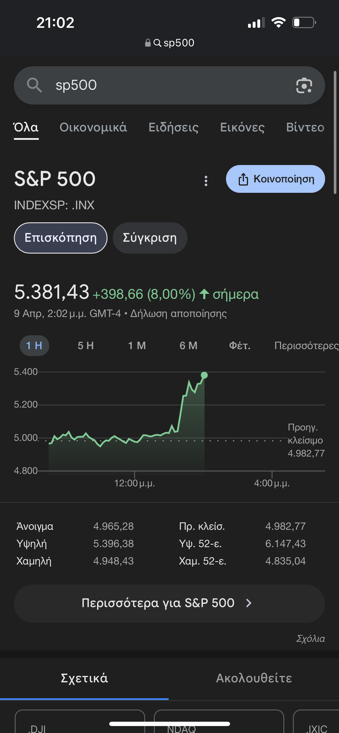 Όποιος έμεινε σταθερός και δεν φοβήθηκε αγοράζοντας χαμηλά έβγαλε και θα βγάλει.Η κυβέρνηση Trump ανακοίνωσε παύση των δασμών για 90 ημέρες, εκτός όμως της Κίνας όπου τους ανέβασε στο 125%.