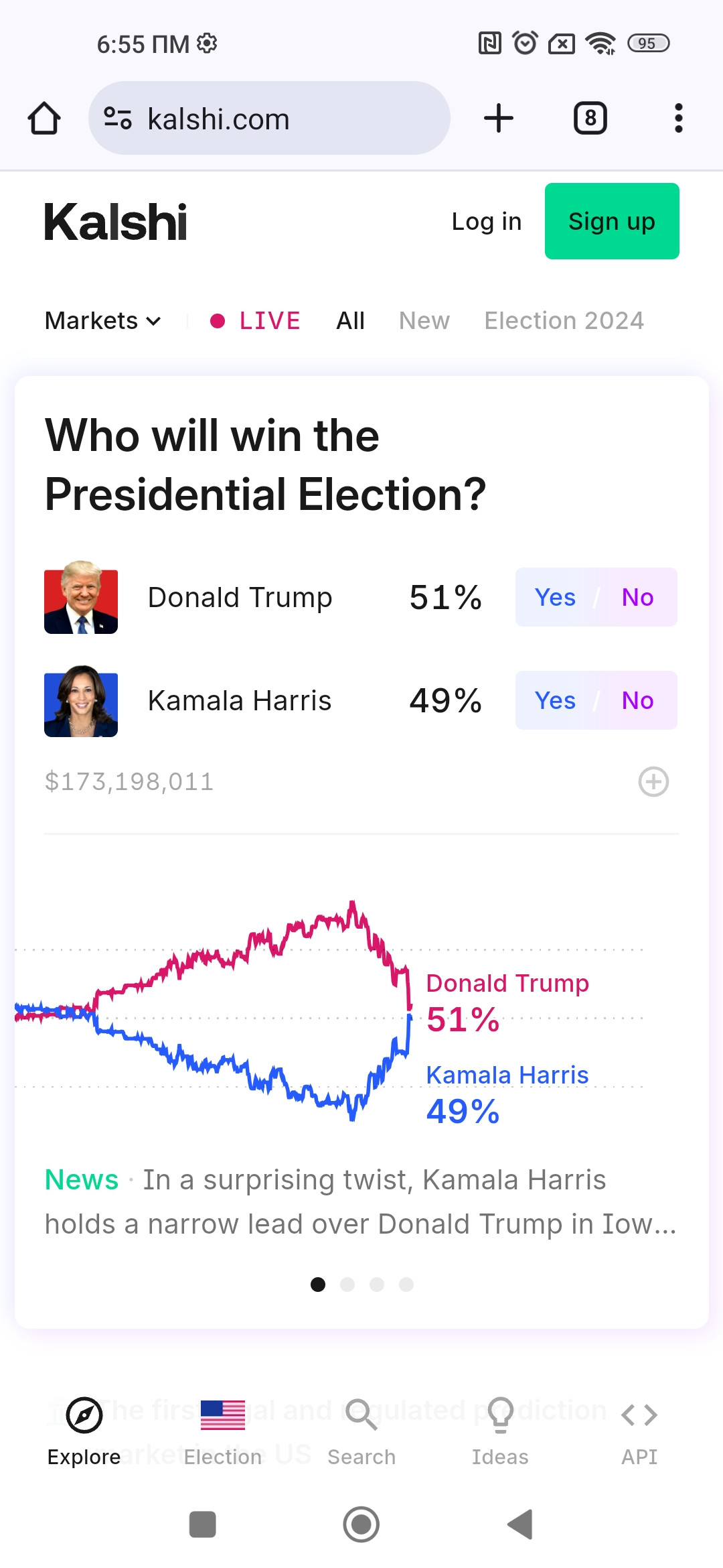 Ο λόγος για την τόσο ξαφνική πτώση των πιθανοτήτων του Trump στα στοιχήματα είναι μια νέα δημοσκόπηση από την πολιτεία της Iowa, παραδοσιακά swing state που όμως είχε προτιμήσει τον Trump για 8 μονάδες το 2016 και 2020.