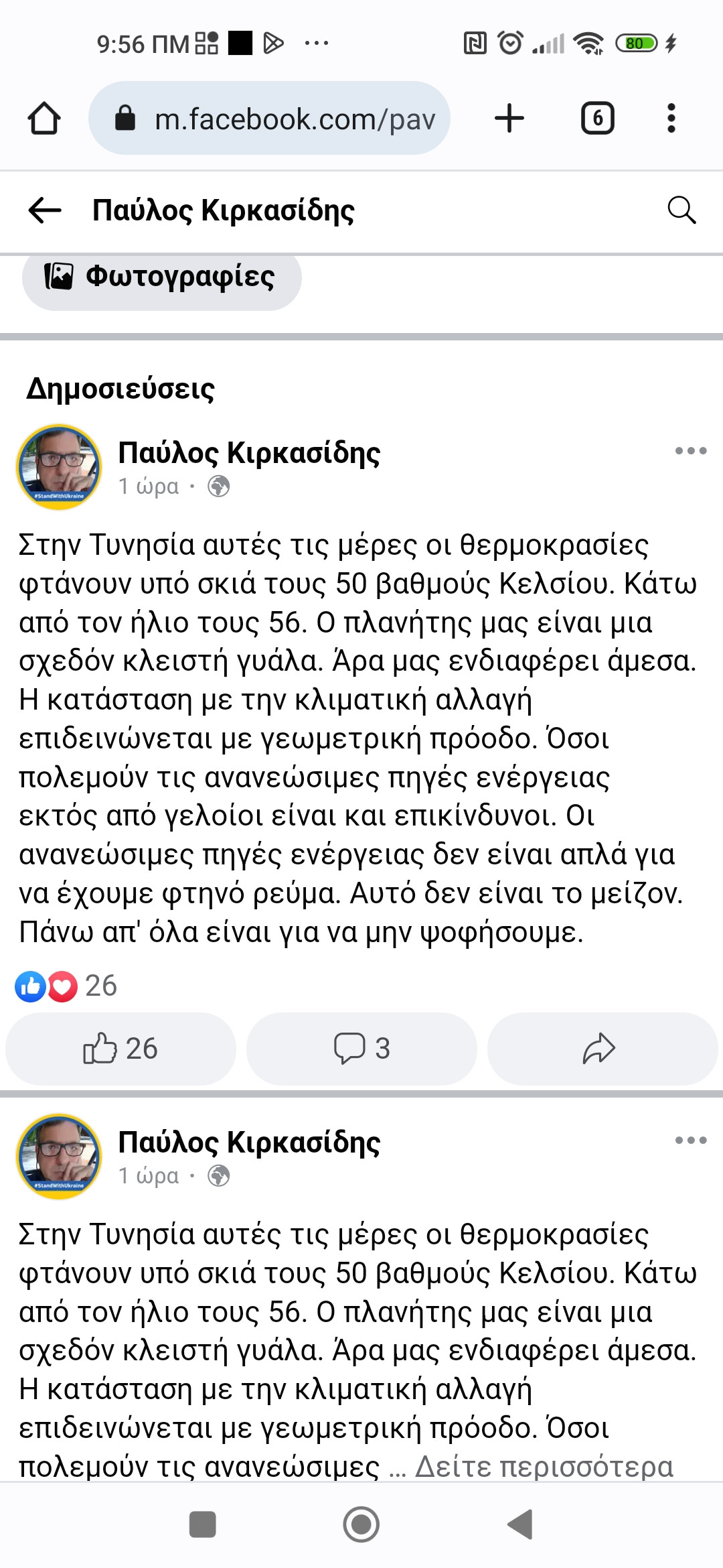 Αγαπητέ juste σου έχω νέα: Την κλιματική αλλαγή την προκαλεί ο άνθρωπος, δε συμβαίνει από μόνη της. Όταν σταματήσουν οι εταιρίες να διαλύουν τα οικοσυστήματα, τότε ίσως μπορεί να αλλάξει κάτι. Μέχρι τότε, στο βωμό του κέρδους θα διαλύουν το σκάφος πάνω στο οποίο βρισκόμαστε.Μην πολεμάτε τις ανανεώσιμες μορφές ενέργειας. Όπου υπάρχουν ανεμογεννήτριες, συνήθως υπάρχει μεγαλύτερη προσοχή και εστίες δασοπροστασίας.