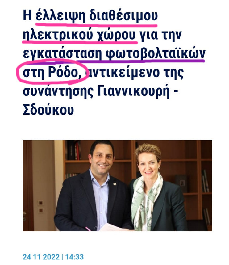 Ο ηλεκτρικός χώρος δεν έχει σχεση με το γεωγραφικό χώρο. Έχουμε περισσότερες ανεμογεννήτριες και φωτοβολταϊκά από αυτά που μπορεί να απορροφήσει το δίκτυο μας. Αρκετοί έχουν δώσει μεγάλα ποσά για ΑΠΕ συστήματα και δεν τους συνδέει ο ΔΕΔΗΕ.Χρόνια τώρα. Και στην Κορινθία τα ίδια με ανεμογεννήτριες.