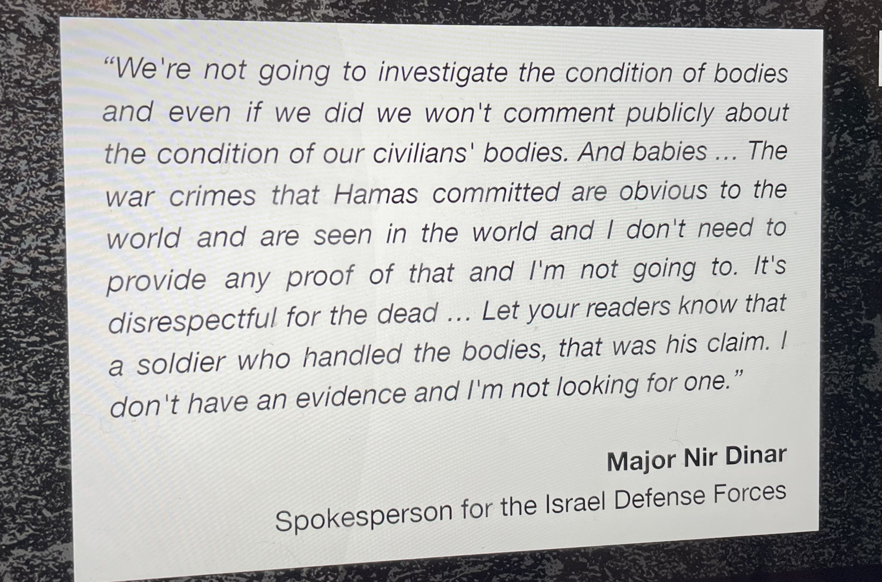 "Πρέπει τώρα να κλαίμε πικρά για τα ισραηλινά θύματα, αλλά πρέπει να κλαίμε και για τη Γάζα. Τη Γάζα, οι περισσότεροι κάτοικοι της οποίας είναι πρόσφυγες που δημιούργησε το Ισραήλ. Τη Γάζα, η οποία δεν γνώρισε ποτέ ούτε μια μέρα ελευθερίας".