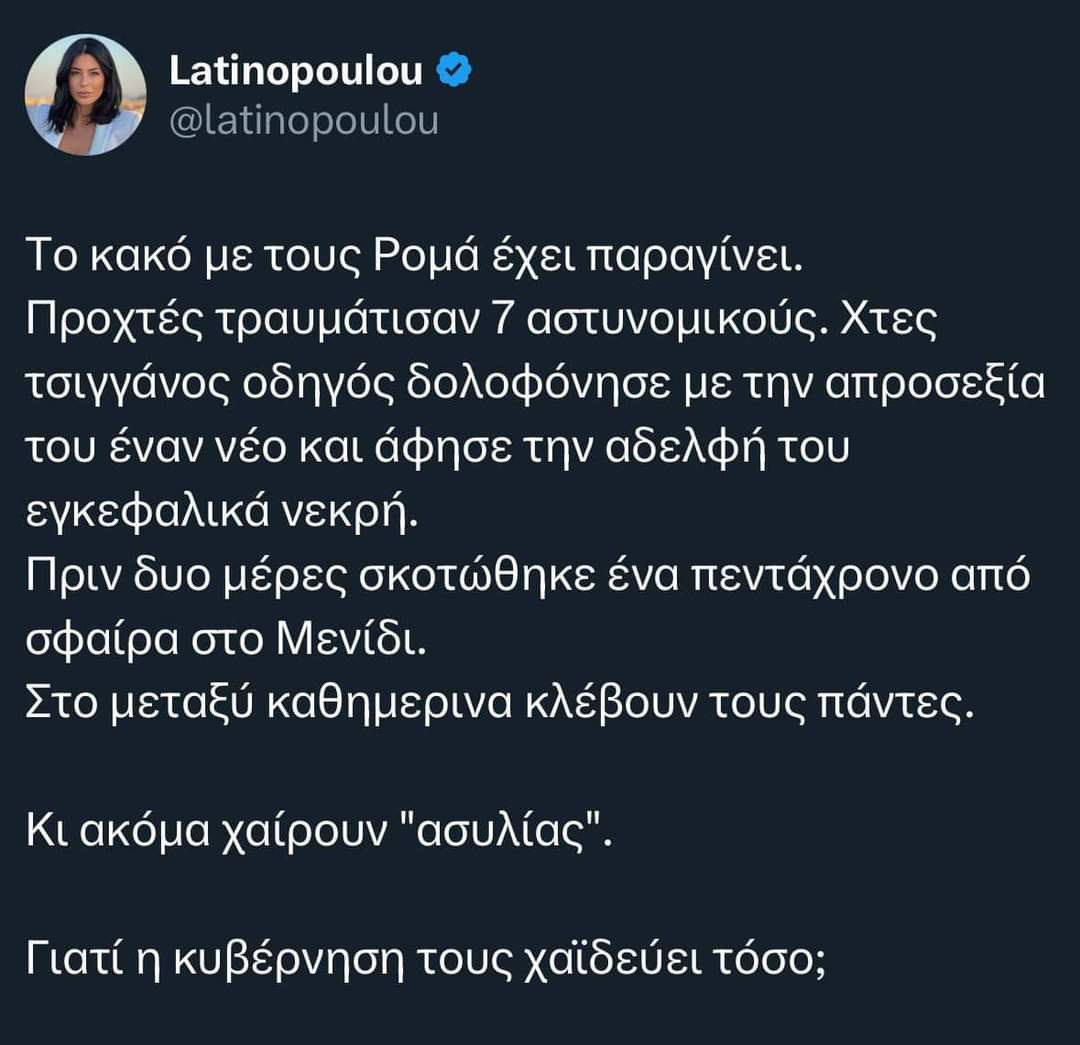 Έχω πει εξαρχής ότι τα εγκλήματα, δολοφονίες και παραβατικοτητα πρέπει να τιμωρείται από όπου και να προέρχεται και ότι είναι καταδικαστεα ειτε ο δράστης είναι Ρομα ειτε όχι, οποιοσδήποτε και να είναι. Δεν μπορώ να ξαναμπω στη διαδικασία να λέω τα ίδια και τα ίδια για τα αυτονόητα, λες και είναι δυνατόν να χαρει ποτέ κανείς όταν σκοτώνεται ένα παιδάκι, ή είναι δυνατόν να είμαι υποχρεωμενος να σχολιάζω το οτιδήποτε εδω μέσα και όταν δεν το κάνω είμαι συνενοχος για κατι. Ήμαρτον.